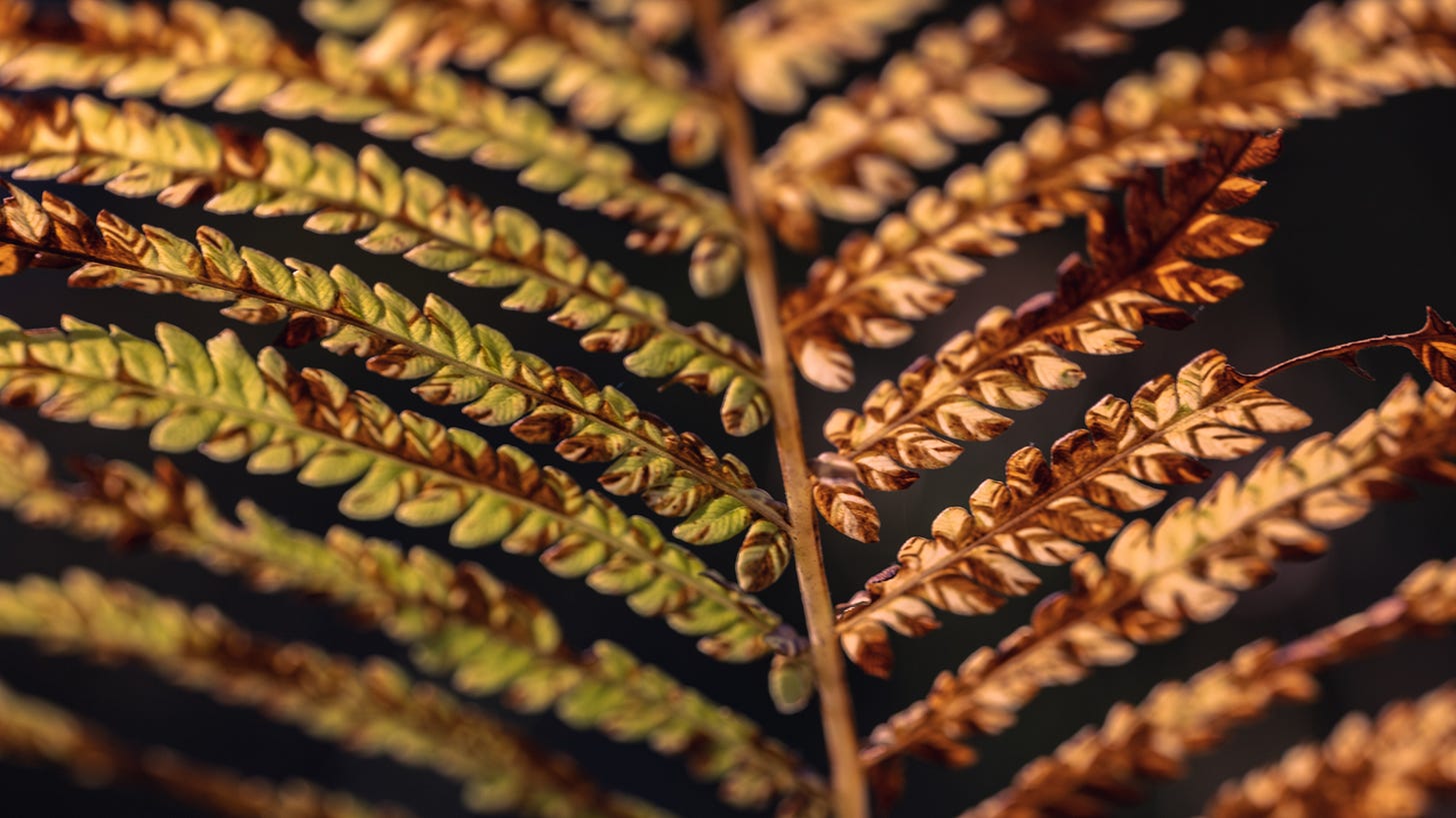 { notice the gradation in colour from one side to the other in these fern fronds. look at how the marbling interrupts its repetition. what patterns do you see? }